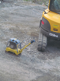 Ja tätä en vain voinut kestää aamulla, heräsin kipeänä, voivottelin menemään ja näin maailman suloisimman pikku työkoneen :D Ihana ihana ihana !! ;u; Mun päässä on ollut ihania kuvitelmia siitä lähtien työkoneperheestä joka puurastaa tuolla ulkona menemään.. D'aww...